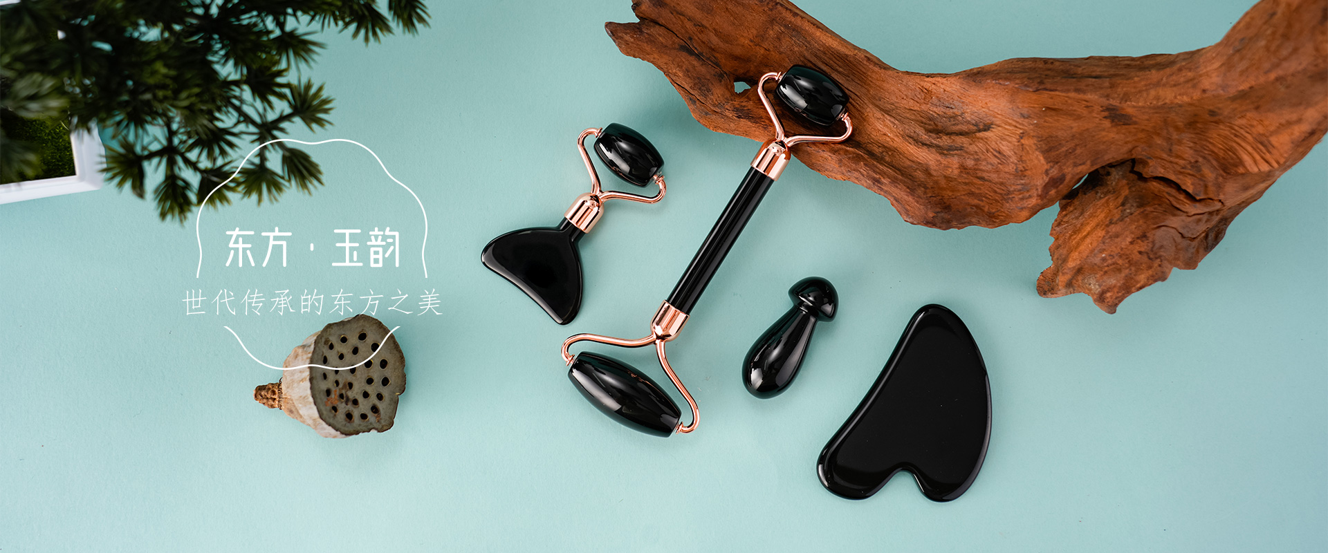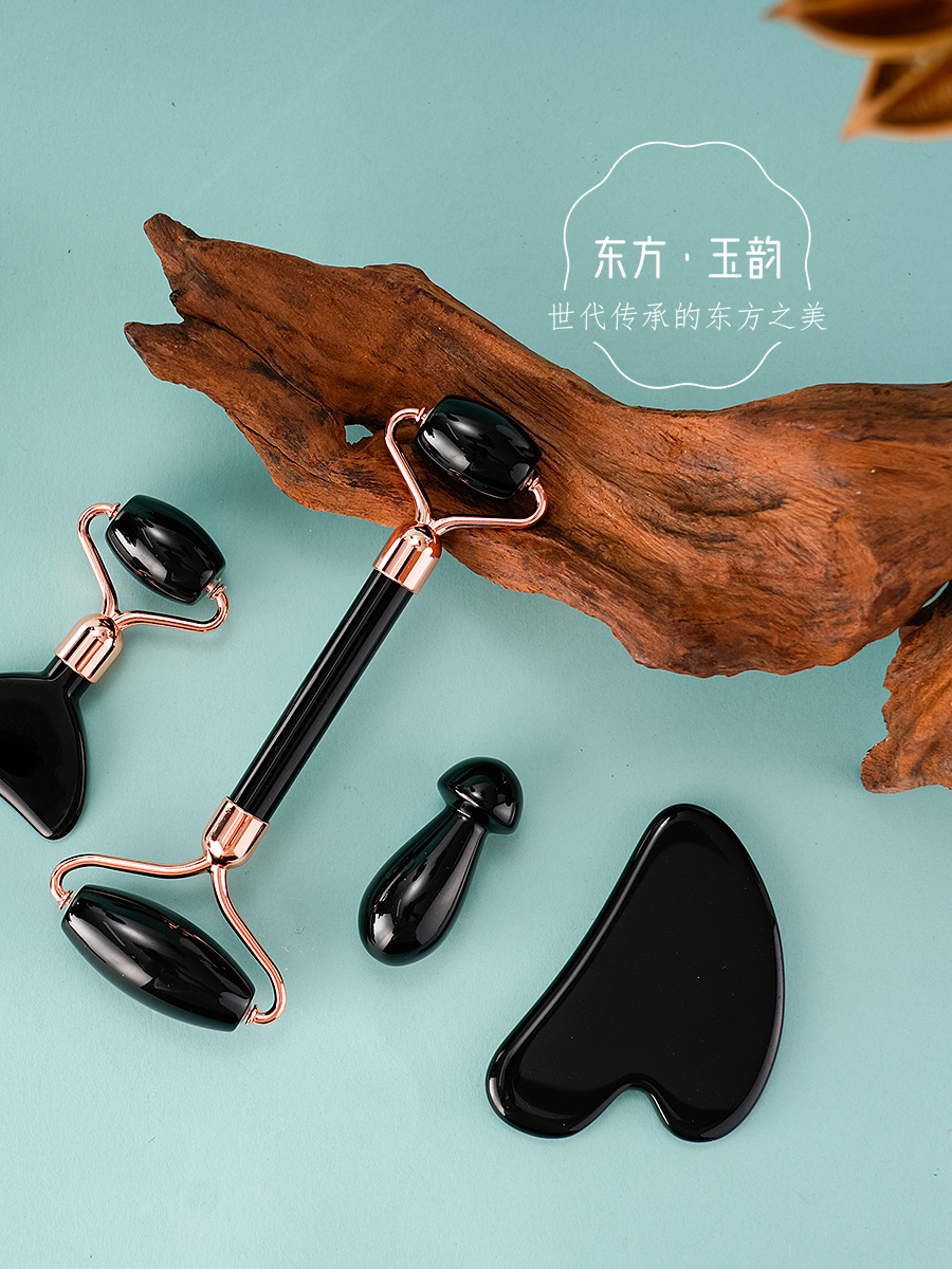 聚焦玉石美容养生工具:黑曜石滚轮棒、玫瑰水晶蘑菇石、九龙玉刮痧板、面摩刮、按摩棒等。