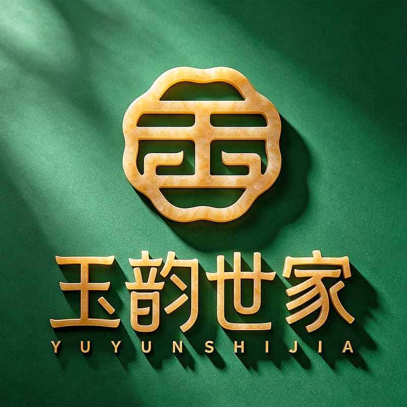 品牌调性:“玉韵世家”四字采用同色系暖金字体,字形舒展稳重,搭配清晰拼音标注,传递出专业、可信赖的品牌气质。整体设计承载“玉石之美,代代相传”的品牌愿景,体现源头工厂对匠心品质的坚守,让玉韵世家在现代视觉中焕发生机。